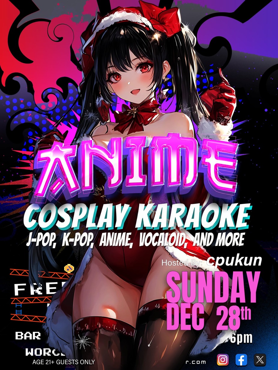 Anime Cosplay Night is back at Freeplay Worcester - Sunday December 28th! Come join us for a night of games, drinks, anime, and karaoke! That's right - Karaoke featuring Anime, J-Pop, K-Pop, Vocaloid, and more has been added to this incredible event! Enjoy some delicious cocktails and pizza, show off your best cosplay, and sing your favorite karaoke hits! Doors open at 6PM and you must be Age 21 or older to attend this event.
