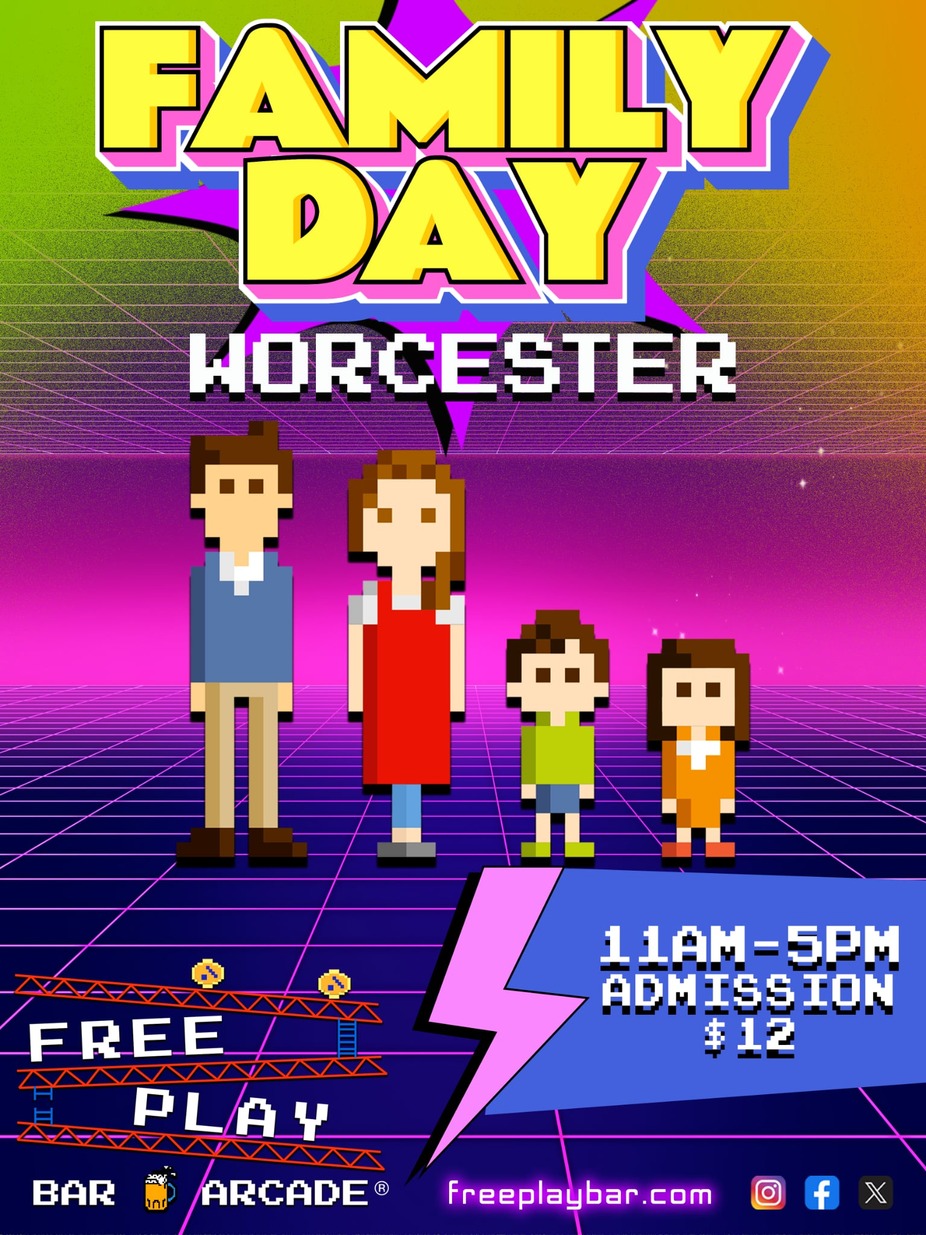 Worcester Freeplay Family Day will be held this Sunday December 14th from 11AM-5PM. Bring the kiddos and enjoy all the arcade games, skee ball, air hockey, and pinball together! Admission is just $12 per person and all games are set to free! Fun for the whole family! Please note, no entry after 4PM