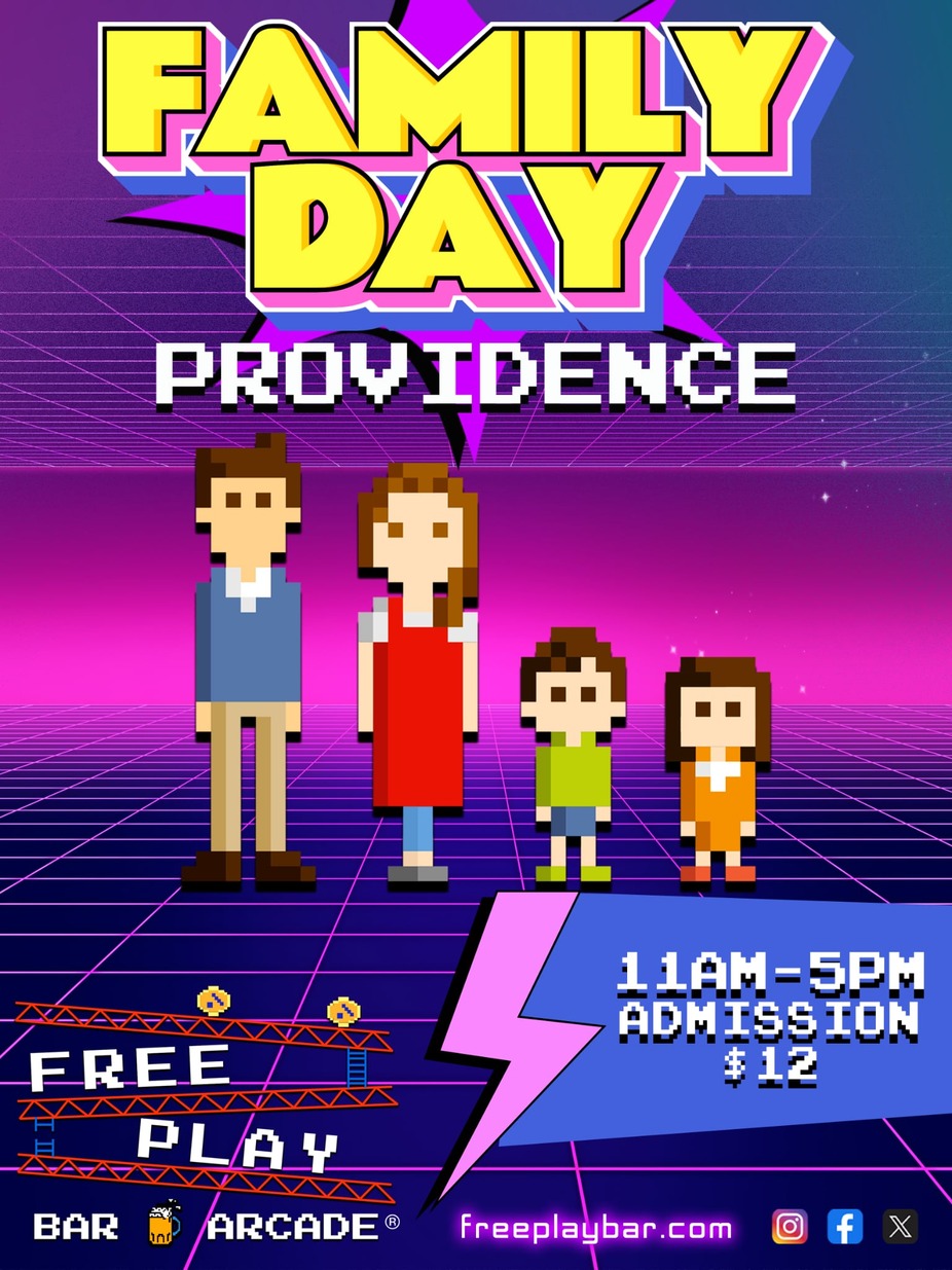 Providence Freeplay Family Day will be held Sunday December 21st from 11AM-5PM. Bring the kiddos and enjoy all the arcade games, skee ball, air hockey, and pinball together! Admission is just $12 per person and all games are set to free! Fun for the whole family! Please note, no entry after 4PM